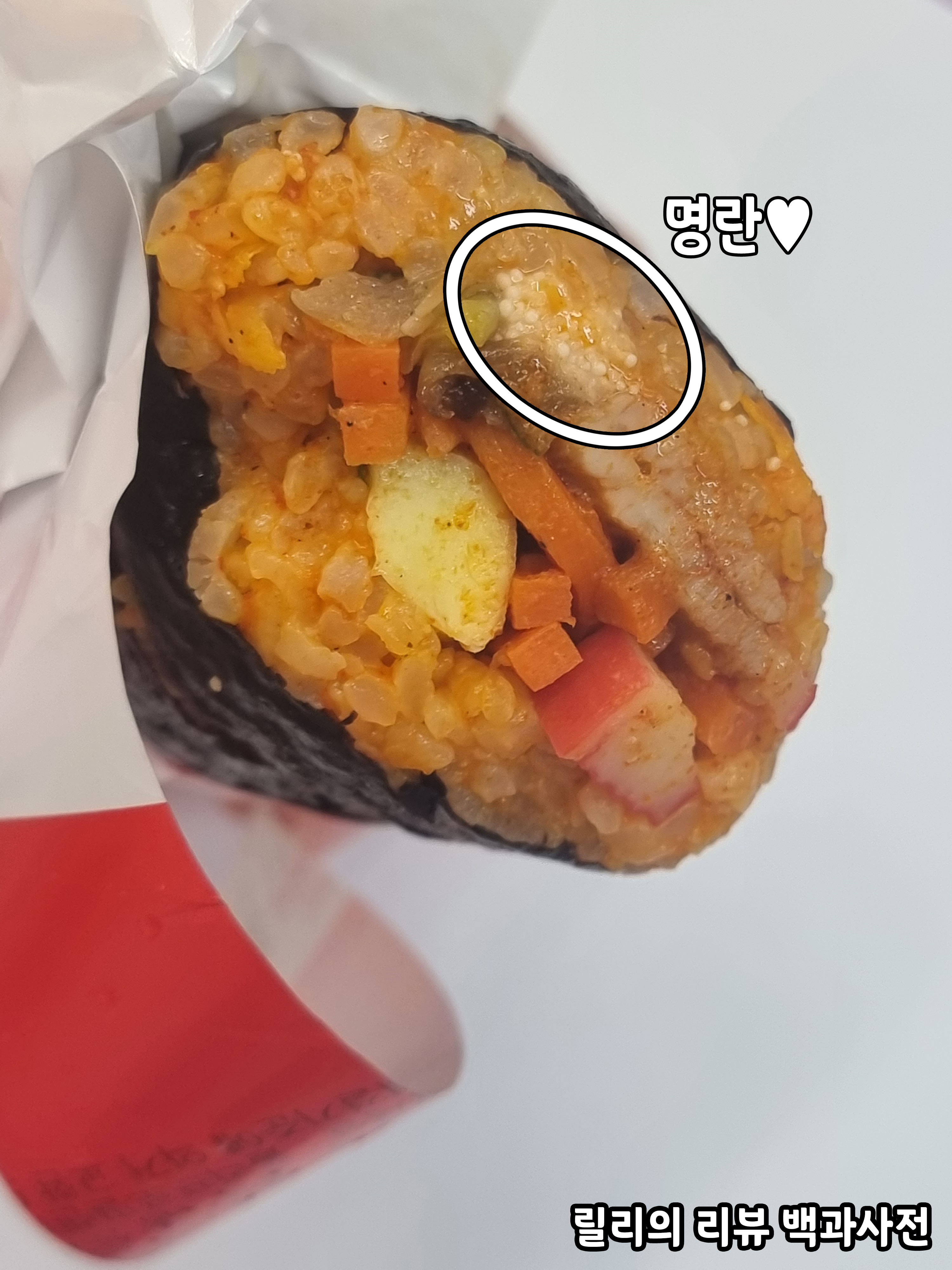 명란이 표시해야 찾을 수 있을 정도로 많지 않아 보이지만 의외로 먹을 때는 명란맛이 잘 느껴졌습니다. 조금 더 많았으면 좋았겠지만 이 정도 양으로도 존재감이 충분했습니다.