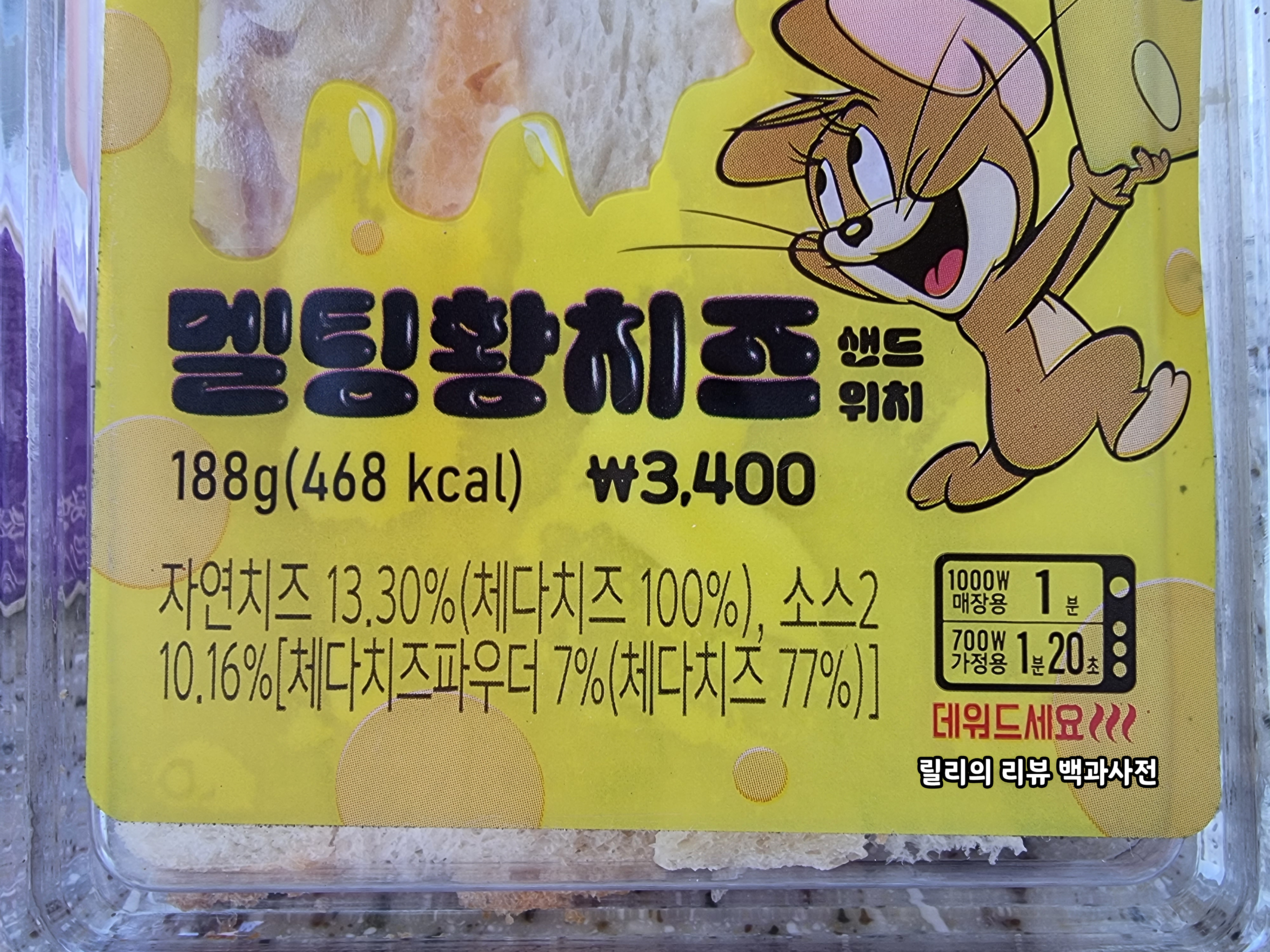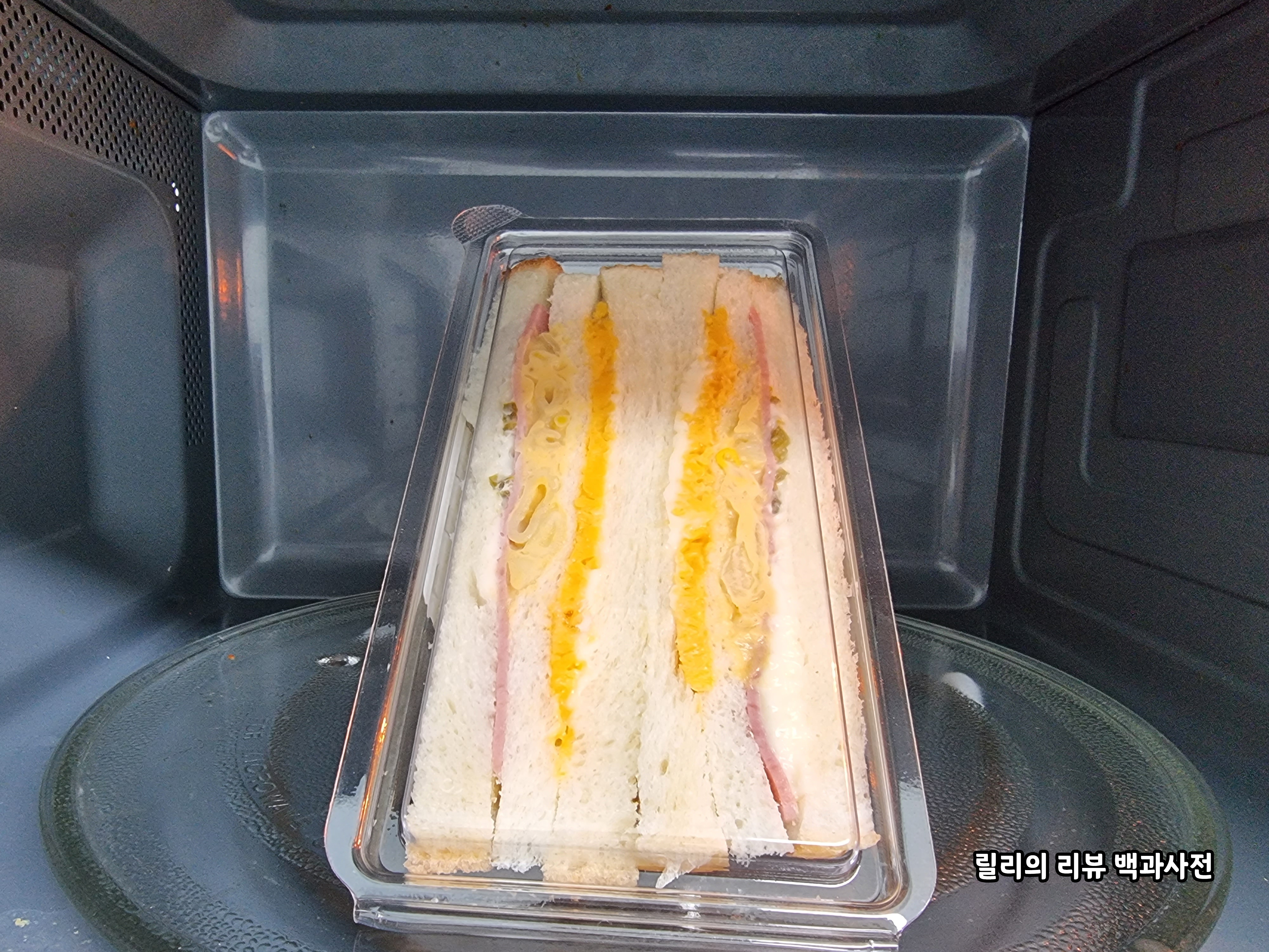 GS25 멜팅 황치즈 샌드위치를 전자렌지에 돌릴 때는 최소한 뚜껑을 열고 돌리거나, 아예 다른 접시에 옮겨 담아서 데우는 것을 추천드립니다.